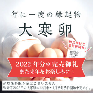 2022年1月26日の発送分を持って今年の【大寒卵】は終了致しました。