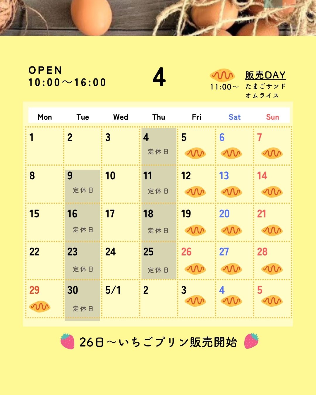 4/29(月祝)はGWに伴いオムライスを限定販売します✨