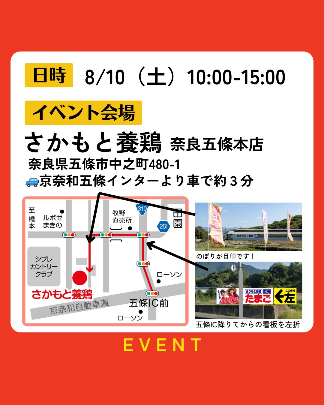 場所:さかもと養鶏 奈良五條本店(五條インターから約2~3分)