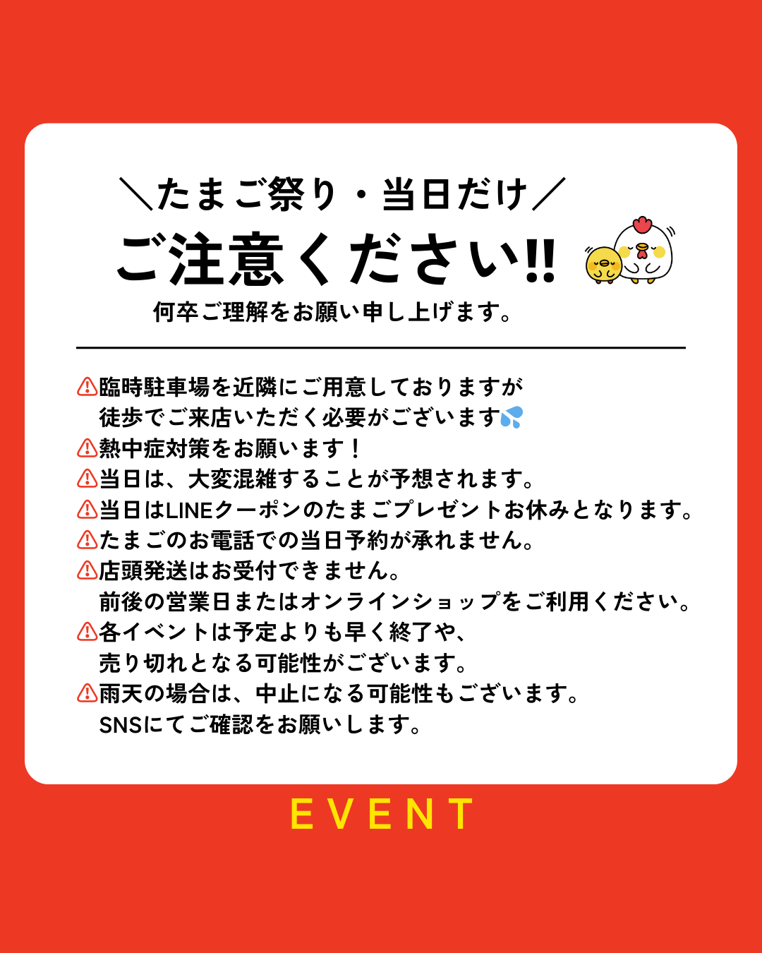 ⚠️当日はLINEクーポンのたまごプレゼントお休みとなります。